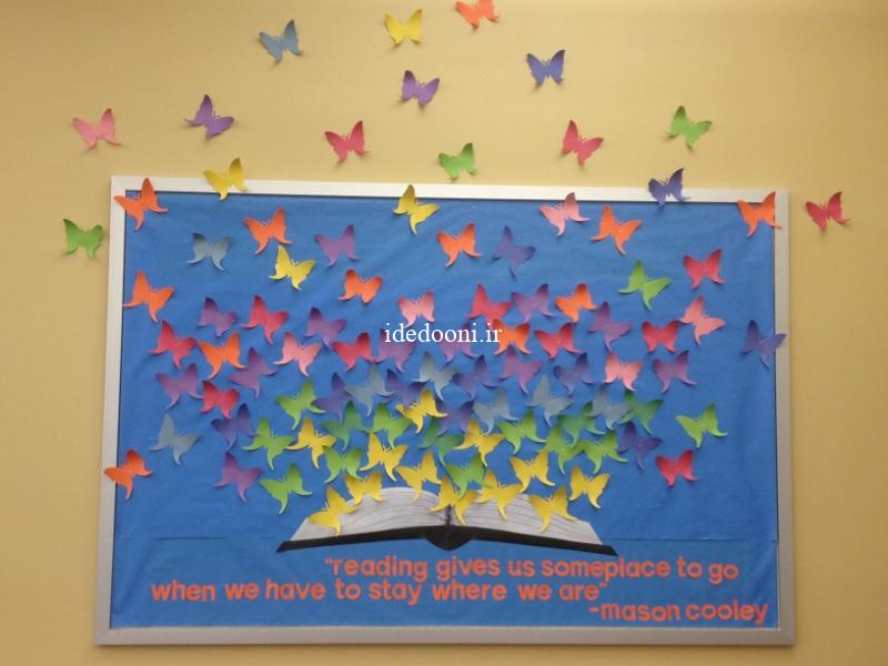 می توانید نامی برای کتاب بنویسید و پروانه ها را بزرگ طراحی کنید و داخل آنها نکات جالب توجهی را از آن کتاب بنویسید.